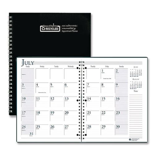 Spiralbound Academic Monthly Planner, 11 X 8.5, Black Cover, 14-month (july To Aug): 2022 To 2023