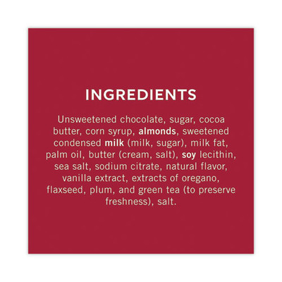 | Flavor: | Dark Chocolate 60% Cacao; Dark Chocolate 72% Cacao; Dark Chocolate Sea Salt and Almonds; Dark Chocolate Sea Salt Caramel |