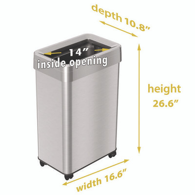Stainless Steel Rectangular Liner Open Top Trash Can, 10.5 Gal, Brushed Stainless Steel