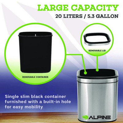 Stainless Steel Rectangular Liner Open Top Trash Can, 5.3 gal, Brushed Stainless Steel