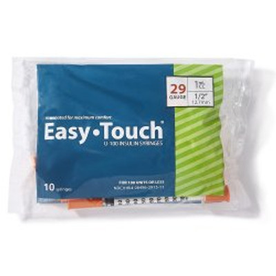 Standard Insulin Syringe with Needle EasyTouch 0.5 mL 1/2 Inch 29 Gauge NonSafety Thin Wall