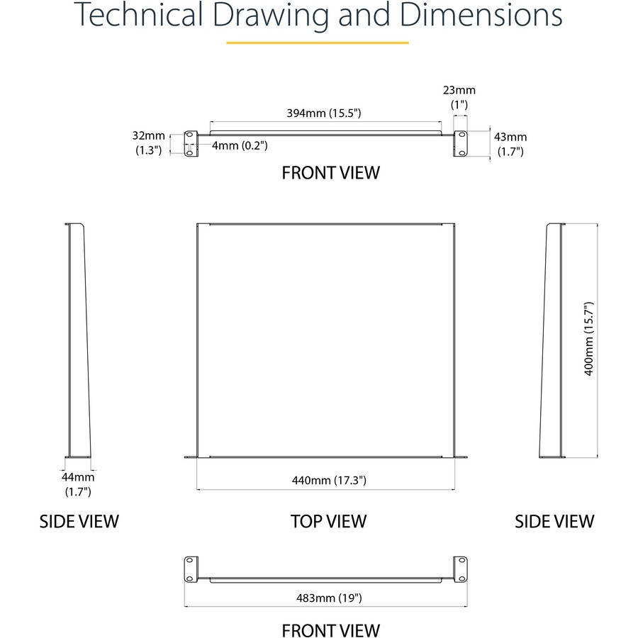 Ensure your equipment is secure The durable rack mount tray can hold up to 20 kg (44 lbs.) of equipment and is constructed using SPCC commercial-grade cold-rolled steel. Make the most of your available space The 1U cantilever shelf lets you optimize your working space by giving you the ability to mount equipment to your 19-inch rack instead of taking up desk or floor space. It's perfect for your SOHO (small office, home office) environment, server room, data center or any other location with limited space available. Customize your setup You can install the 1U network cabinet shelf in your rack at any height, giving you a stable surface for placing equipment that's un-mountable such as a computer, or for storing your tools. The Choice of IT Pros Since 1985 StarTech.com conducts thorough compatibility and performance testing on all our products to ensure we are meeting or exceeding industry standards and providing high-quality products to IT Professionals. Our local StarTech.com Technical Advisors have broad product expertise and work directly with our StarTech.com Engineers to provide support for our customers both pre and post-sales. The CABSHELF116 is backed by a StarTech.com lifetime warranty and free lifetime technical support. More from the Manufacturer