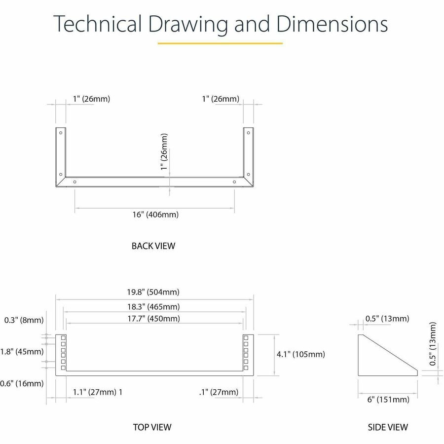The RK219WALLV 2U 19in Steel Vertical Wall Mount Equipment Rack Bracket offers a versatile storage solution allowing rackmount equipment (Network devices, power strips, patch panels) to be mounted vertically (flush with wall) to save space. Alternatively, the 2U bracket can be installed horizontally under a desk, making it easy to access installed equipment directly from your workspace. This TAA compliant product adheres to the requirements of the US Federal Trade Agreements Act (TAA), allowing government GSA Schedule purchases. Perfect for SoHo (small office, home office) environments, the wallmount bracket features a sturdy steel design constructed to EIA-310 19in rack standards, and offers space-savings for environments lacking the footprint space for a full size server equipment rack. Suitable for mounting on virtually any wall/ceiling surface (e.g. drywall), the bracket mounting holes are positioned at exactly 16in apart, matching standard construction framework. Need more storage space? StarTech.com also offers a 3U 19in Wallmount Bracket and a 4U 19in Wallmount Bracket.