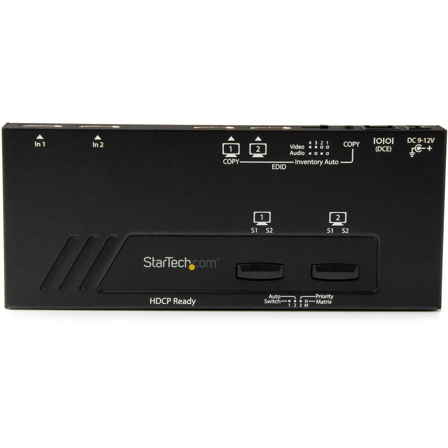 StarTech.com 2x2 HDMI Matrix Switch - 4K with Fast Switching and Auto-Sensing - 3840 × 2160 - 4K - 2 x 2 - Display, DVD Player, Blu-ray Disc Player, Computer, Projector, A/V Receiver, Set-top Box, Gaming Console - 2 x HDMI Out - TAA Compliant