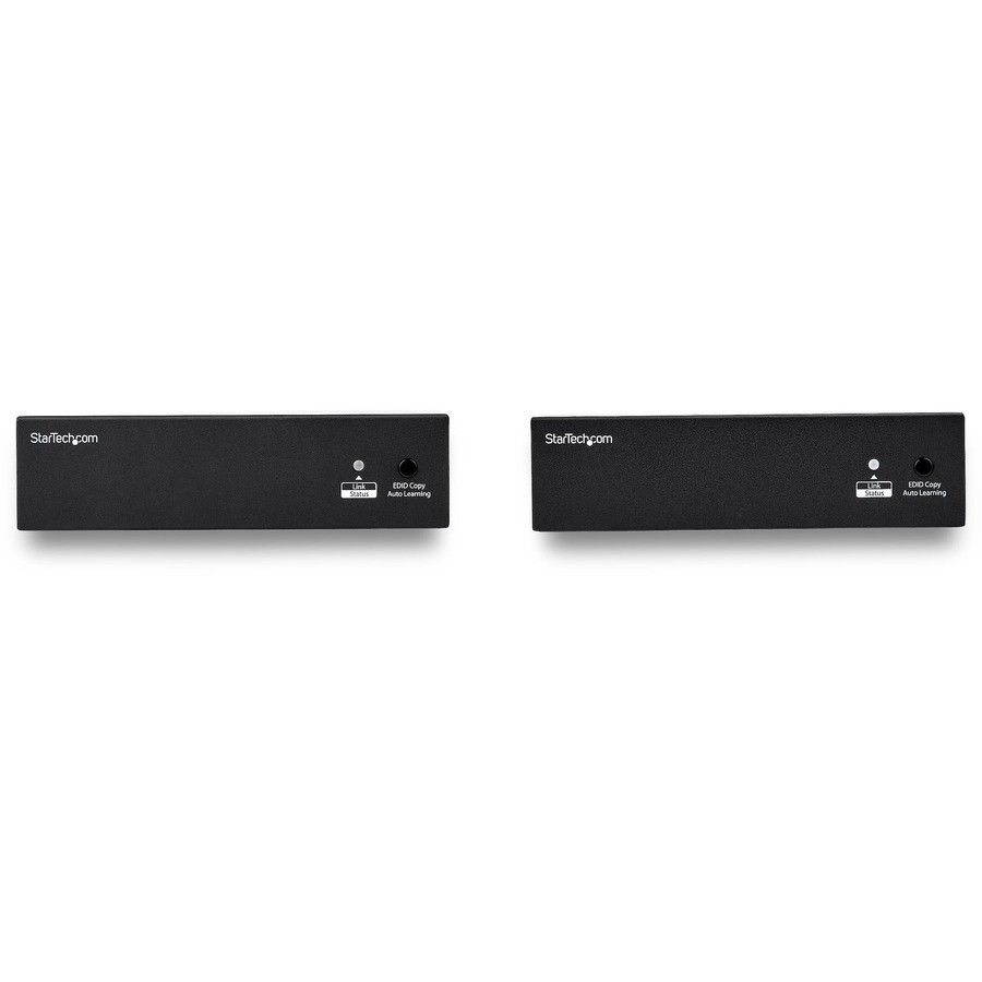 This HDMI® over CAT6 extender lets you extend two HDMI sources up to 90 m (295ft.), to individual HDMI displays over a single CAT6 cable. Designed for a simple, tidy setup, the extender also supports bi-directional IR control for added flexibility. Dual source support Reduce the need for additional equipment and cables, by extending two HDMI connections with a single CAT6 cable. Running only onecable can save cost on installation or enable you to extend two HDMI signals using an existing cable run. You can also use this 1080p HDMI extender to run separate video signals to the same display, for mission critical digital signage applications where if one signal goes down, the other can easily be swapped in it's place. Bi-directional control With bi-directional IR control, you can control your devices from either end of theextension, such as a Blu-ray™ player and laptop on one end and two TV displays on the other. Theextender includes an IR kit with discreet dongles that easily connect to both your transmitter and receiver, enabling you to remotely control any device you choose from either side of your extension. Simplified setup The simplicity of one-cable setup avoids the hassle of running multiple cables, while also reducing potential failure points. The included mounting hardware offers professional mounting options ideal for public spaces such as offices or auditoriums. The TAA compliant ST222HDBT is backed by a 2-year StarTech.com warranty and free lifetimetechnical support.