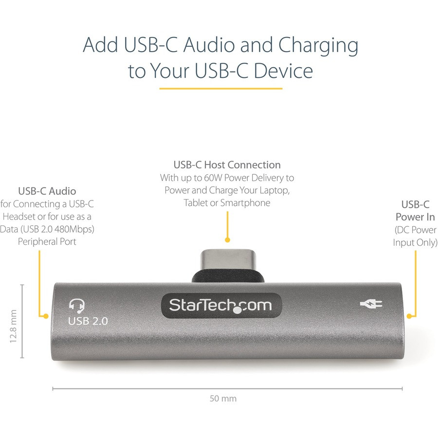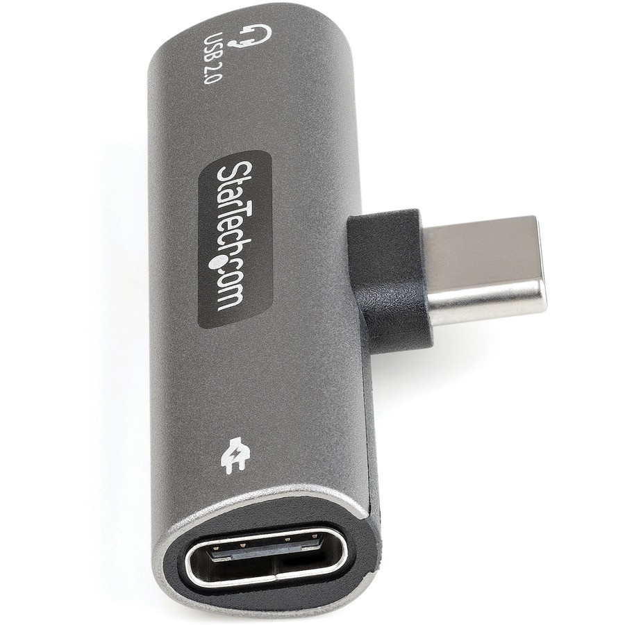 StarTech.com USB-C Audio & Charging Adapter - 1 x 24-pin USB Type C USB 2.0 Powered USB Male - 1 x 24-pin USB Type C USB 2.0 Powered USB Female, 1 x 24-pin Type C USB Female - Silver - 1 Each