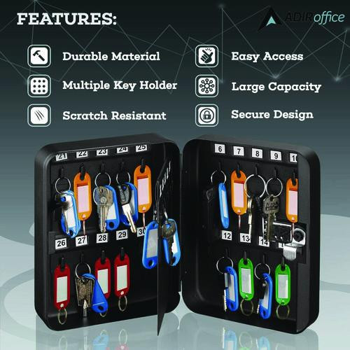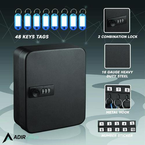 Steel Heavy-Duty Key Cabinet with Combination Lock, 30-Key, 6.4 x 3 x 8, Stainless Steel 304, Black