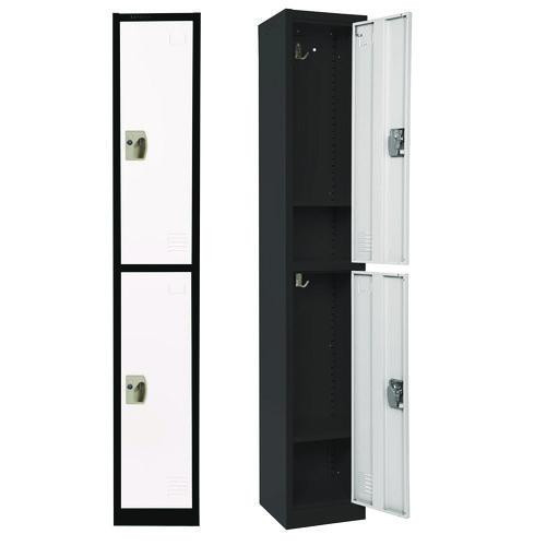 Steel Storage Locker, 2 Compartment, 12 x 12 x 72, Black Body/White Doors