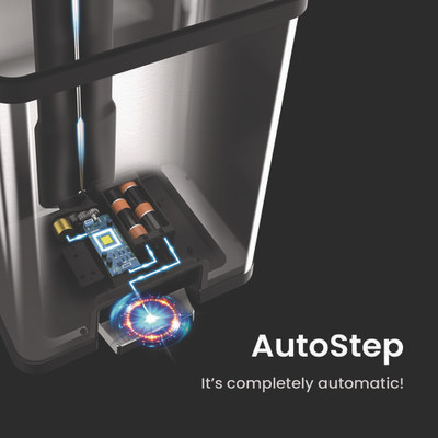 Step Pedal Trash Can, 13 Gal, Plastic/stainless Steel, Silver