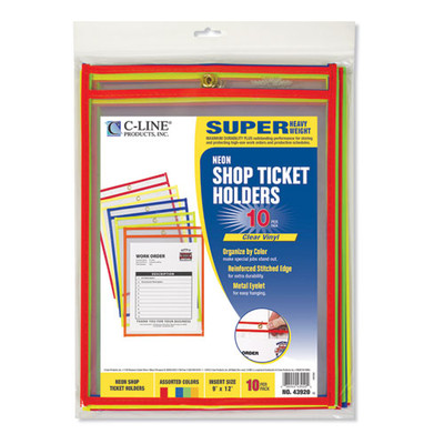 Stitched Shop Ticket Holders, Neon, Assorted 5 Colors, 75", 9 X 12, 10/pack