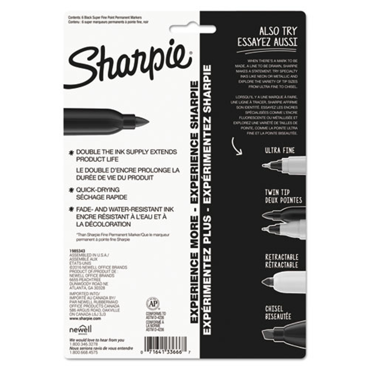 Super Permanent Marker, Fine Bullet Tip, Black, 6/pack