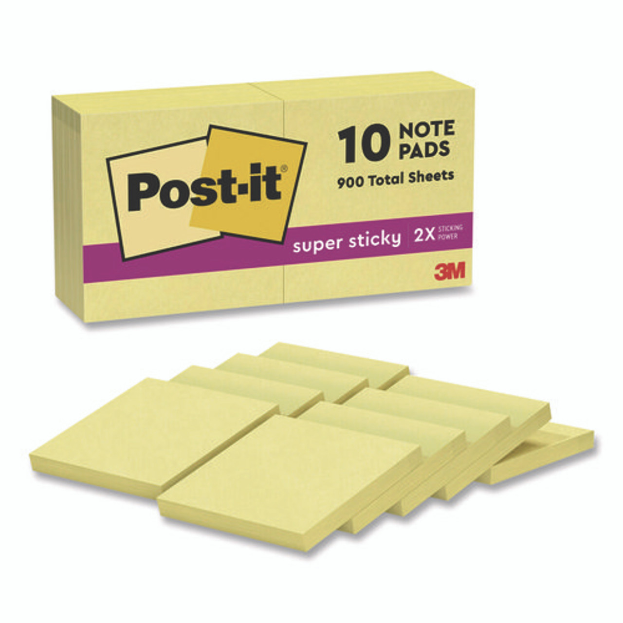 Super Sticky Pads In Canary Yellow, 3 X 3, 90 Sheets/pad, 10 Pads/pack