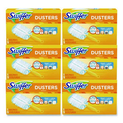 Swiffer Duster offers the trapping power of Swiffer in a fluffy, go-anywhere form. Unscented duster uses thousands of soft, fluffy fibers that can change shape to fit wherever they must go. They trap and lock twice the dust and allergens than a feather duster on virtually any surface for a great clean. Ergonomic handle allows you to get to where your hand can't reach. When you're finished cleaning, simply toss the duster and the dust into the garbage. It is safe for wood, ceramic, vinyl tile, electronics and other hard surfaces. Starter kit includes one handle and five duster refills.