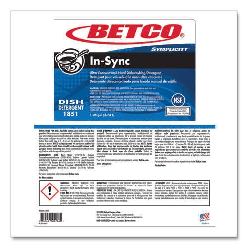 Symplicity In-Sync Premium Hand Dishwashing Detergent, Fresh Ozonic Scent, 1 gal Bottle, 4/Carton