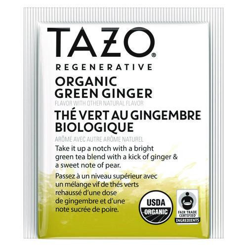 Tea Bags, Organic Green Ginger, 16/Box, 6 Boxes/Carton