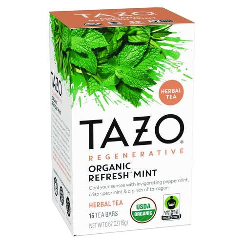 Tea Bags, Organic Refresh Mint, 16/Box, 6 Boxes/Carton