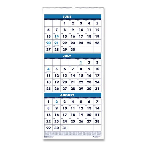 Recycled Three-month Format Wall Calendar, Vertical Orientation, 8 X 17, White Sheets, 14-month (june To July): 2022 To 2023