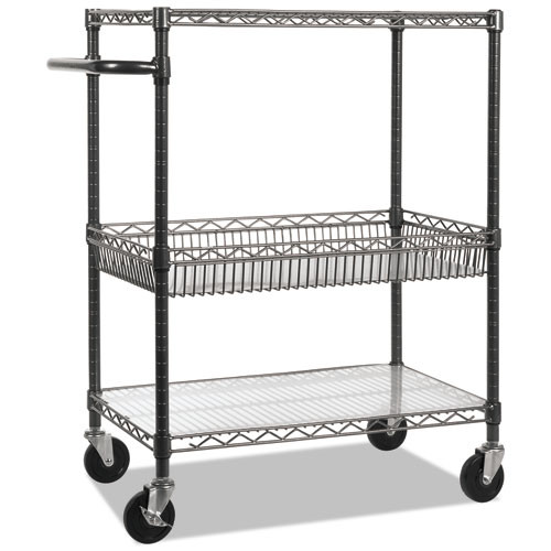 Three-tier Wire Cart With Basket, 34w X 18d X 40h, Black Anthracite