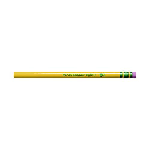 Ticonderoga Beginners Woodcase Pencil With Eraser And Microban Protection, Hb (#2), Black Lead, Yellow Barrel, Dozen