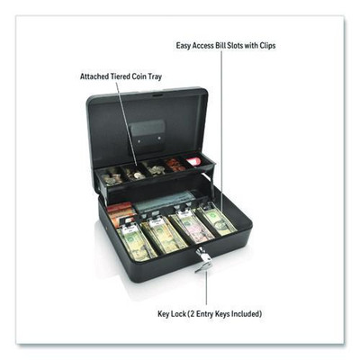 Tiered Cantidoor Lever Cash Box, 4 Bill, 5 Coin Slots, Key Lock, 11.9 X 9.7 X 3.5, Steel, Black