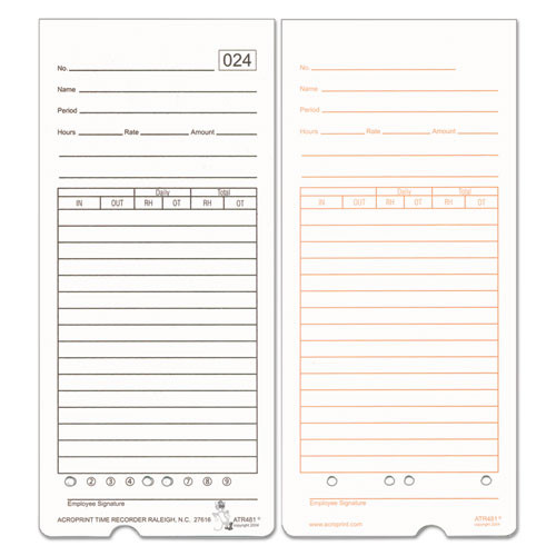Time Clock Cards For Acroprint Atr480, Two Sides, 7.5 X 3.35, 50/pack