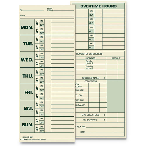 Time Clock Cards, Replacement For 331-10, Two Sides, 3.5 X 8.5, 500/box