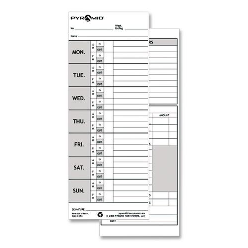 Time Clock Cards For Pyramid Technologies 1000/2000, Two Sides, 3.5 X 9, 100/pack