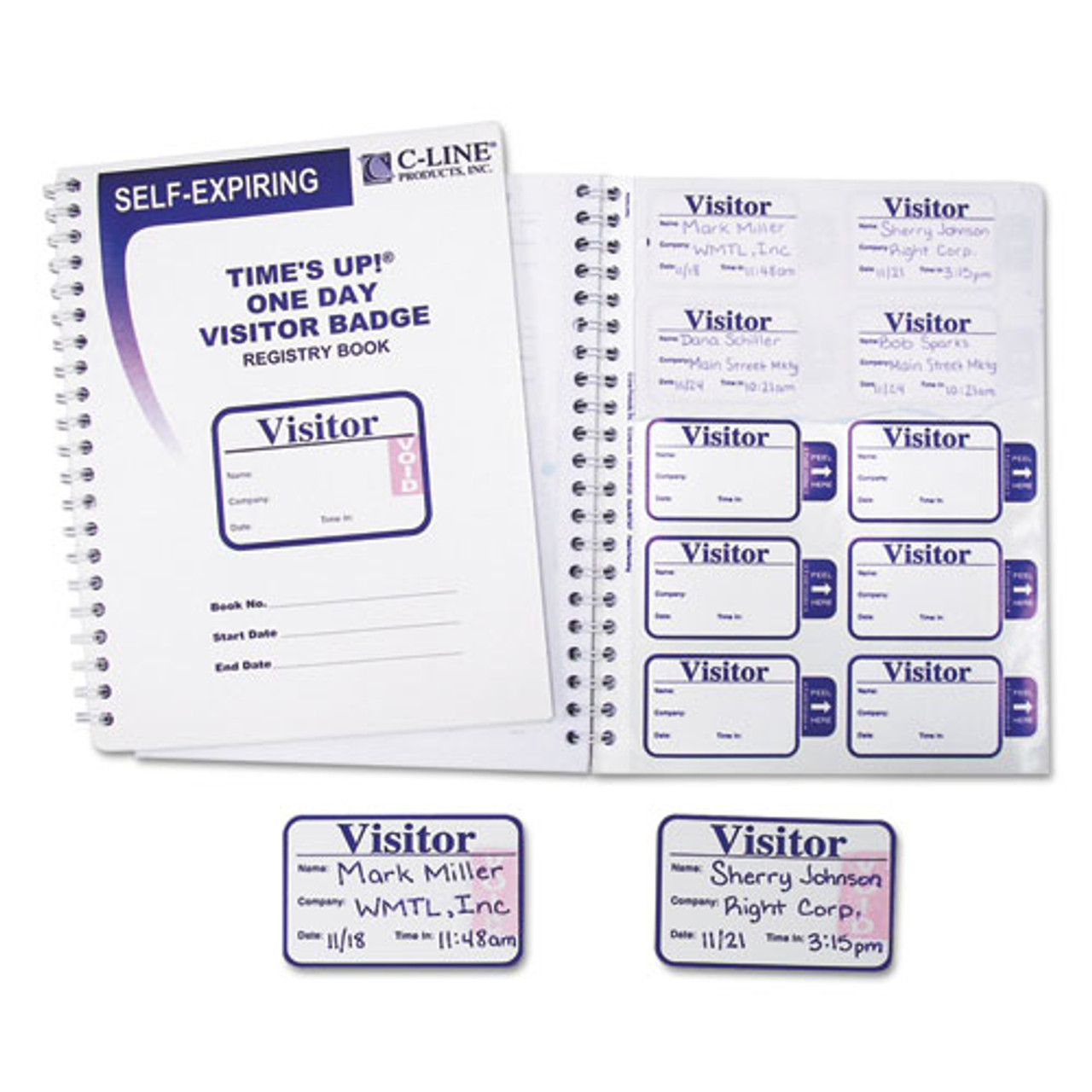 Time's Up Self-expiring Visitor Badges With Registry Log, 3 X 2, White, 150 Badges/box
