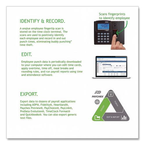 Timetrax Elite Biometric Time Clock, 50 Employees, Black