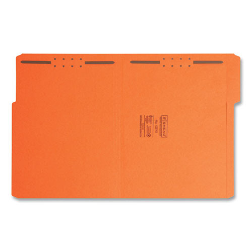 Top Tab Colored Fastener Folders, 2 Fasteners, Letter Size, Orange Exterior, 50/box