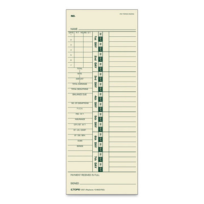 Add To Quote TOPS™ Time Clock Cards, Replacement For 10-800762, Two Sides, 3.5 X 9, 500/box Equivalent to time clock manufacturer's time cards. 143 lb tag stock. Add To Quote