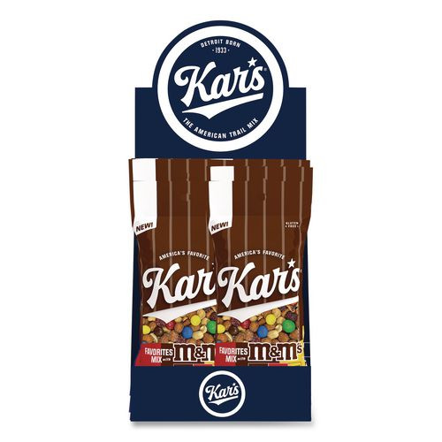 Since our humble beginnings in 1933 selling roasted nuts outside Detroit's Tiger Stadium, Kar's Nuts has become a nationwide snack sensation, creating flavor combinations inspired by classic American recipes. Food Type: Trail Mix, Nuts & Seeds; Flavor: M&M's Favorites Mix; Capacity (Weight): 2 oz; Sugar Free: No.