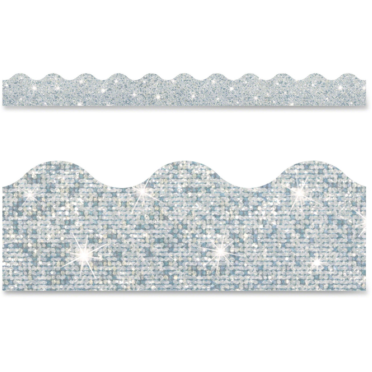 Trend Silver Terrific Trimmers Sparkle - Fun, Learning Theme/Subject - Skill Learning: Color - Rectangle Topped With Waves Shape - Pin-up - Layer patterns - Durable, Reusable, Precut - 2.25" Width x 390" Length - Silver - Paper - 1 Each