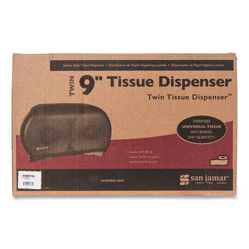Twin 9" Jumbo Tissue Dispenser, 19 X 5 1/4 X 12, Transparent Black Pearl