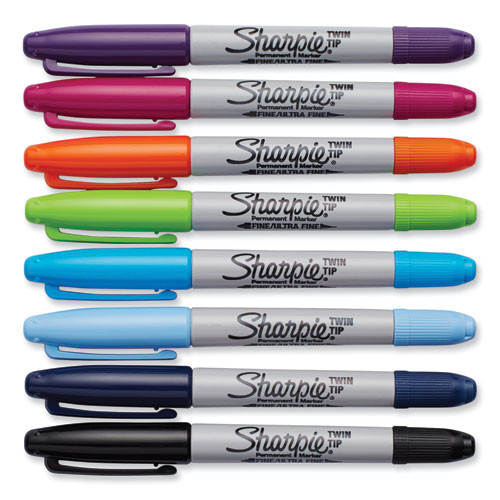 Twin-tip Permanent Marker, Extra-fine/fine Bullet Tips, Assorted Colors, 8/set