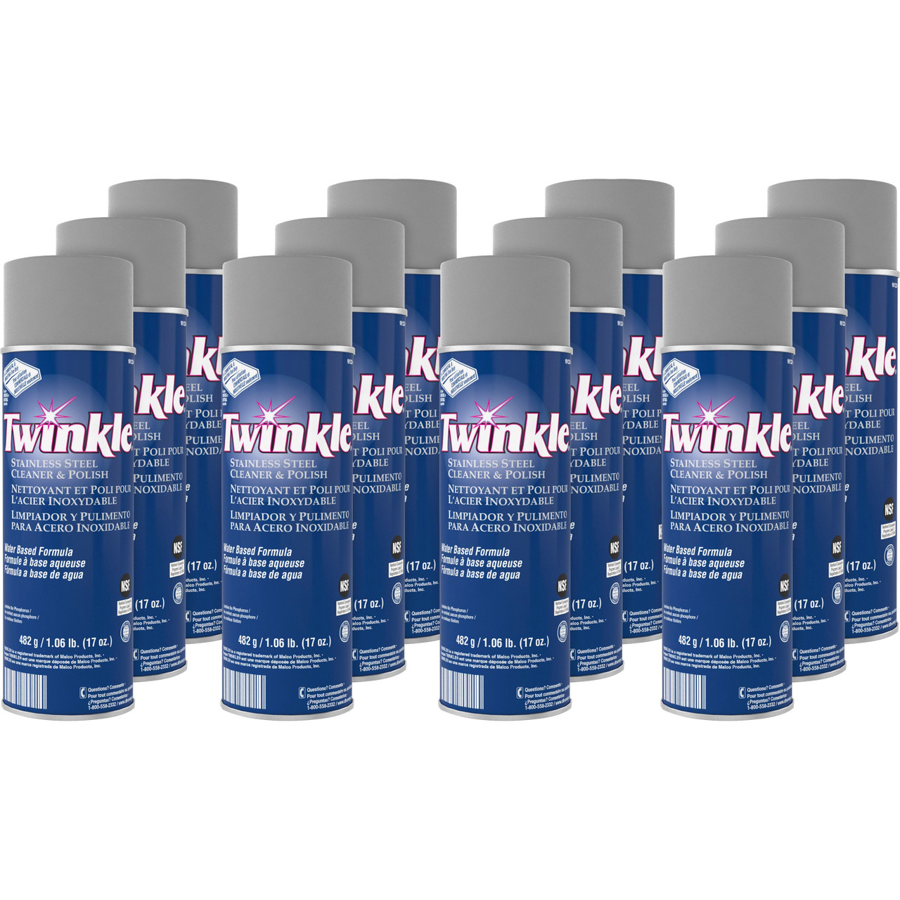 Twinkle Stainless Steel Cleaner/Polish - Ready-To-Use - 17 oz (1.06 lb) - Characteristic Scent - Film-free, Residue-free, Water Based, Lemon Scent, CFC-free - White - 12 / Carton