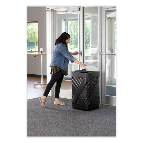 Twist Waste Receptacle with Open Top, 32 gal, Steel, Black