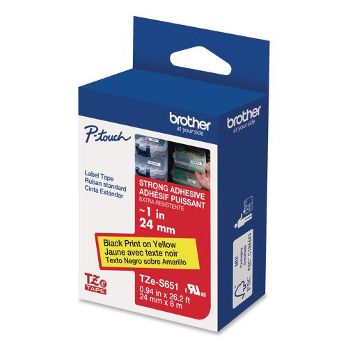 Tze Extra-strength Adhesive Laminated Labeling Tape, 0.94" X 26.2 Ft, Black On Yellow