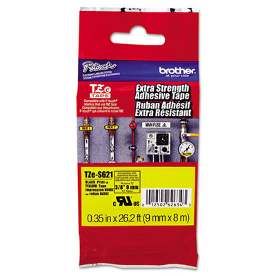 Tze Laminated Removable Label Tapes, 0.35" X 26.2 Ft, Black On Yellow