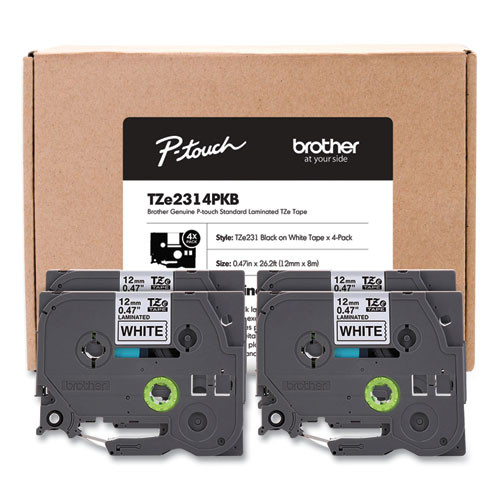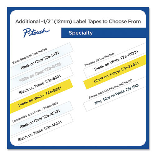 Tze Series Standard Adhesive Laminated Labeling Tape, 0.5", Black On White, 4/pack