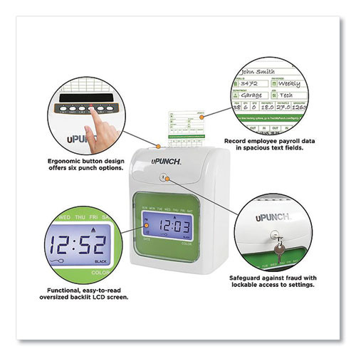 Ub1000 Electronic Non-calculating Time Clock Bundle, Lcd Display, Beige/green