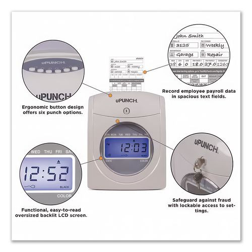 Ub2000 Electronic Calculating Time Clock Bundle, Lcd Display, Gray