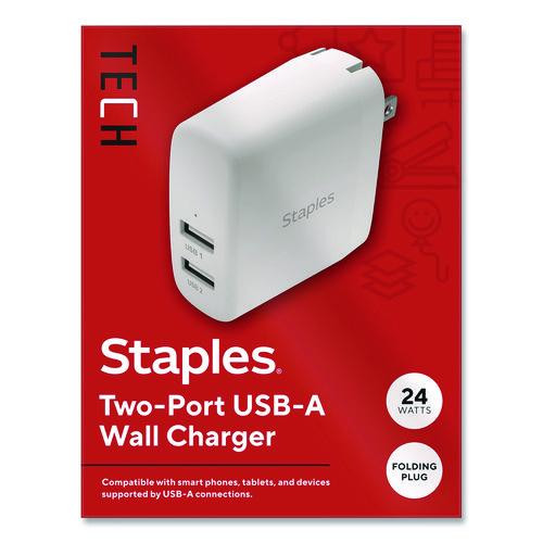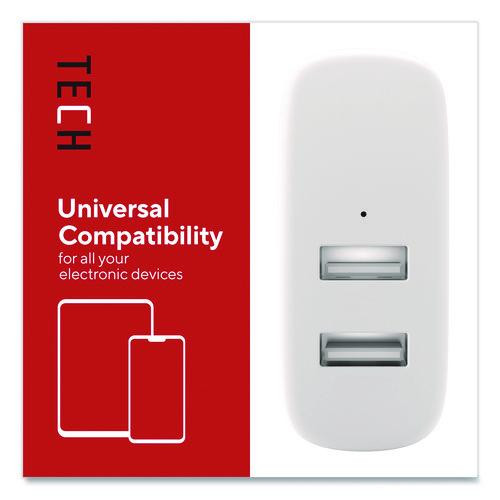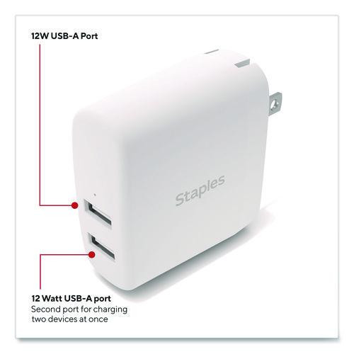 USB-A Wall Charger, 24 W, 2 Ports, White