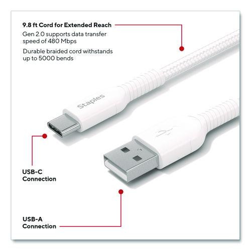 USB-C to USB-A 2.0 Charging Cable, 9.8 ft, White