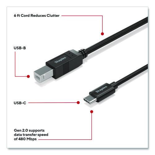 USB-C to USB-B 2.0 Cable, 6 ft, Black