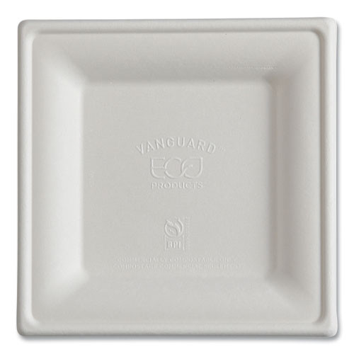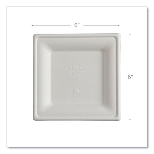 Vanguard Renewable and Compostable Sugarcane Plates, 6 x 6, White, 500/Carton