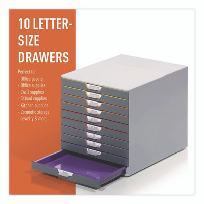 Varicolor Stackable Plastic Drawer Box, 5 Drawers, Letter To Folio Size Files, 11.5" X 14" X 11", Gray