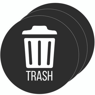 Vinyl Decals, Trash, 4" Diameter, Black/white, 3/pack