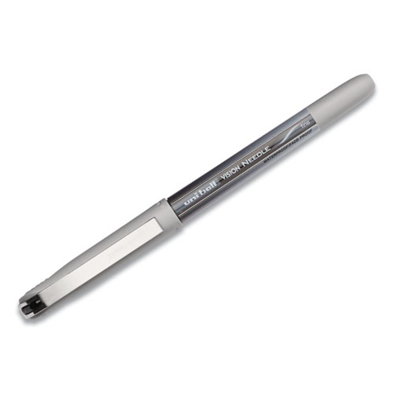Vision Needle Roller Ball Pen, Stick, Fine 0.7 Mm, Black Ink, Silver Barrel, Dozen
