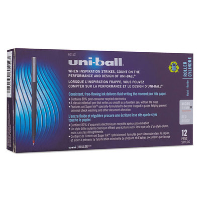 Vision Roller Ball Pen, Stick, Micro 0.5 Mm, Black Ink, Black/gray Barrel, Dozen